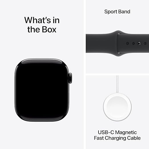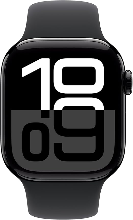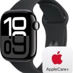Apple Watch Series 10 [GPS 42mm] with Jet Black Aluminium Case with Black Sport Band – S/M. Fitness Tracker, ECG App, Always-On Retina Display, Water Resistant with AppleCare+ (2-Years)