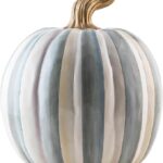 Add a touch of elegance to your fall decor with this stunning hand-painted pumpkin. Crafted from resin, this piece features a captivating pattern of gray and white stripes, accented by a gold stem.