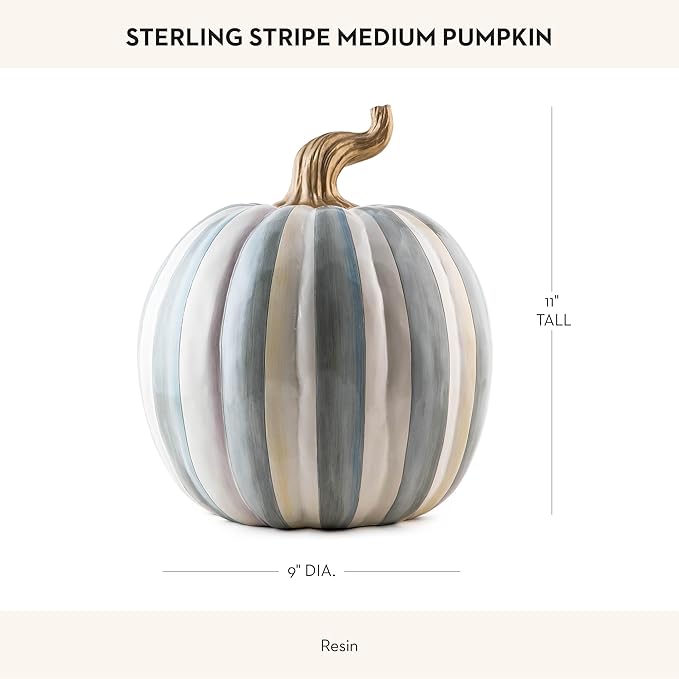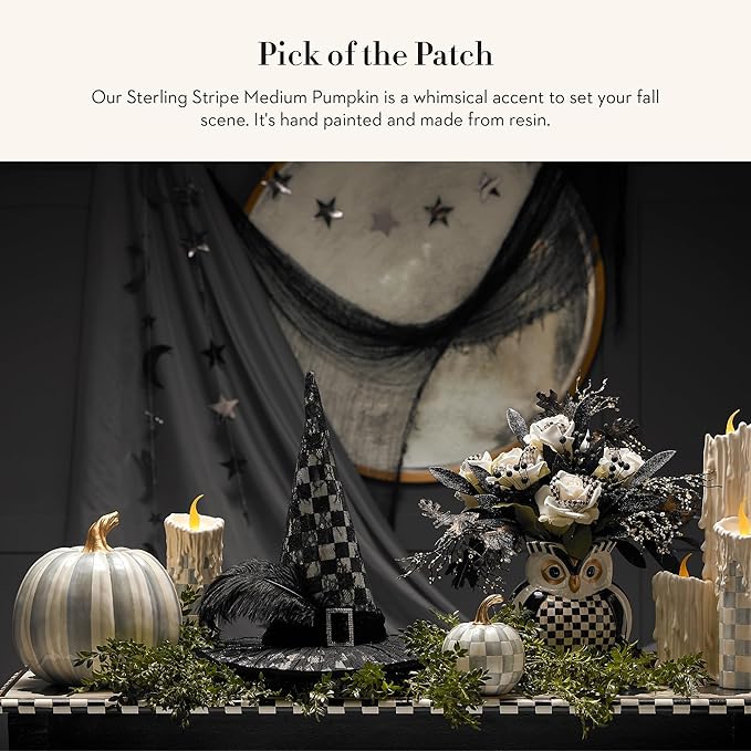 MACKENZIE-CHILDS Medium Pumpkin, Resin Halloween Home Decor, Gray-and-White Sterling Stripe