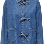 Crafted from premium soft fabric, this women’s denim jacket offers exceptional comfort and style. Its unique design features a lapel v-neckline, loose fit, and a bow tie front, making it a trendy and versatile piece.