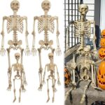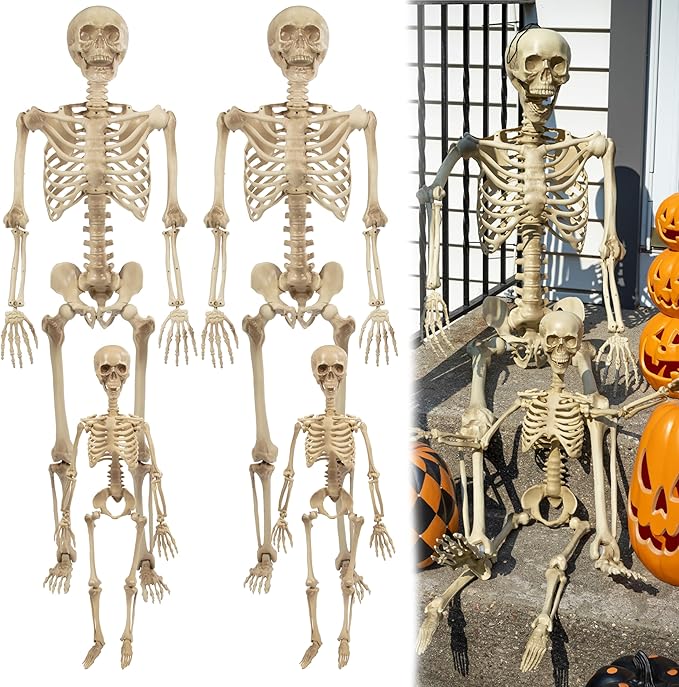 Posable Life Size Human Skeleton Family 4pk- 2 Adult (5’4″) & 2 Children (2′)- Halloween Prop Indoor Outdoor Decorations w Bending Articulated Bones