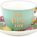 Celebrate the “Best Mom Ever” with this Charming Ceramic Tea Cup and Saucer Set. Show your appreciation with this delightful 5-ounce tea cup, beautifully paired with a vibrant floral multi-color saucer. The mint green cup proudly displays “Best Mom Ever” in elegant gold lettering, making it a heartfelt gift for birthdays, Mother’s Day, holidays, or just to say “I love you.” Measuring 2.5 x 4.9 inches, this set is a perfect token of affection for the special mom in your life. Explore more unique gifts and party supplies from Slant Collections to make every occasion sparkle.