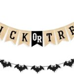 Uniwish Trick or Treat Burlap Banner Halloween Decorations for Mantel Fireplace Glitter Bat Garland Bunting Home Wall Decor Halloween Party Supplies